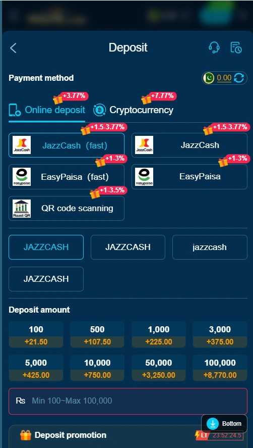 The app provides methods for deposit and withdrawal. Users can add balance using local payment options. The process is easy. Does not take much time to complete. Always double-check details before confirming any transaction.You can use jazzcash and easypaisa for your transactions.